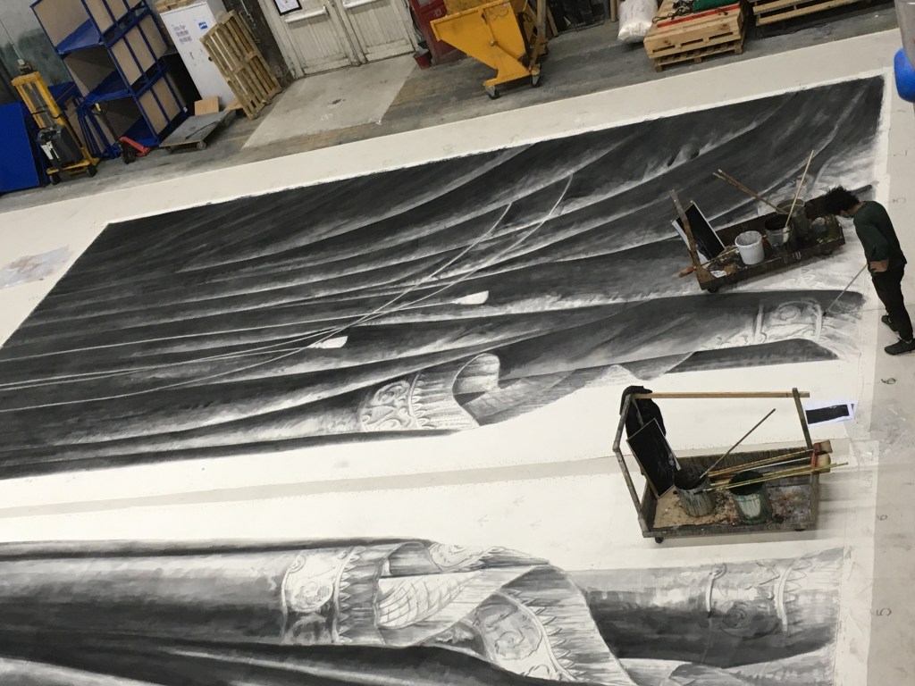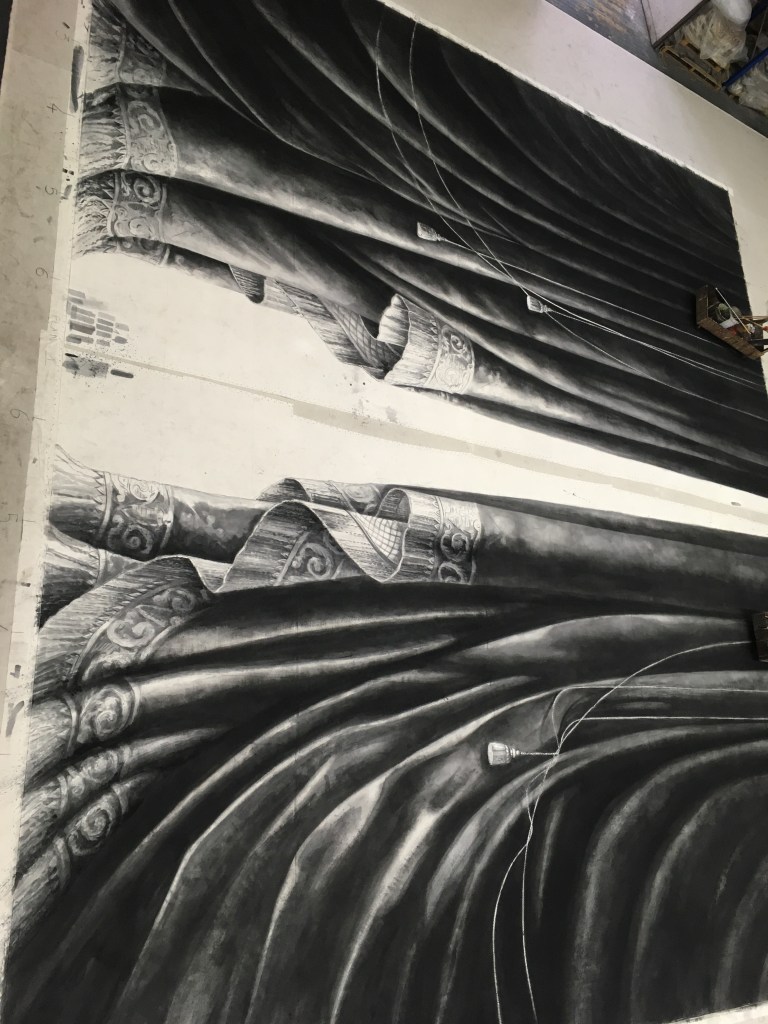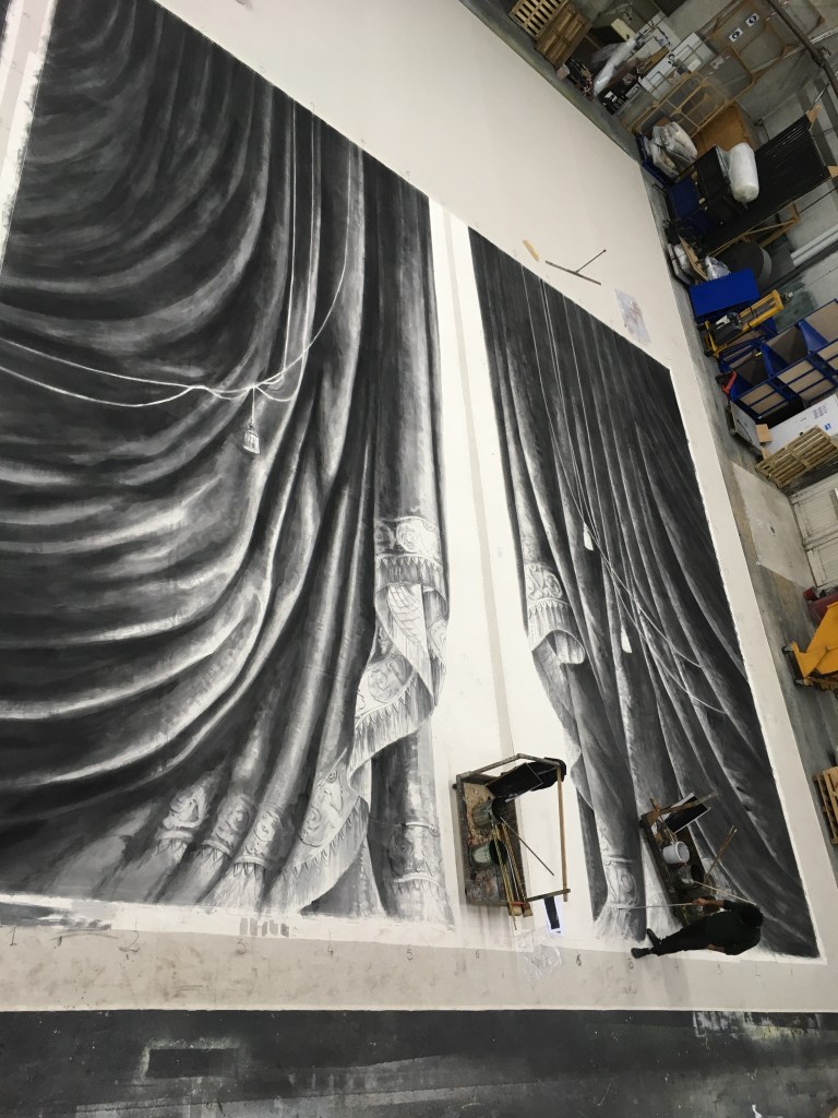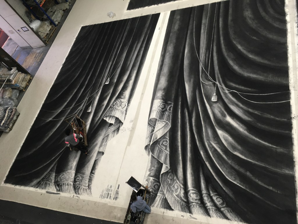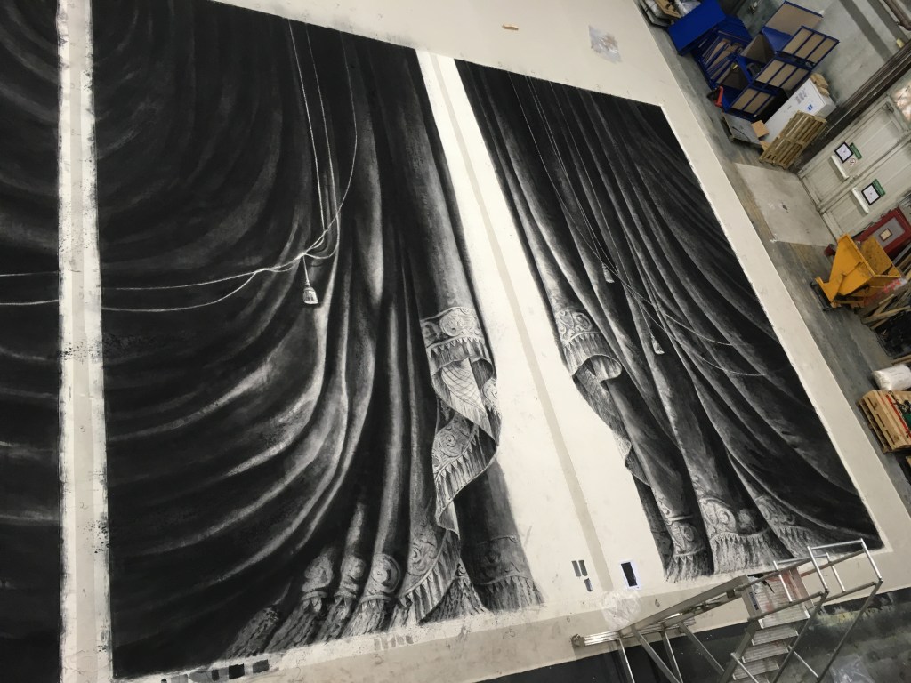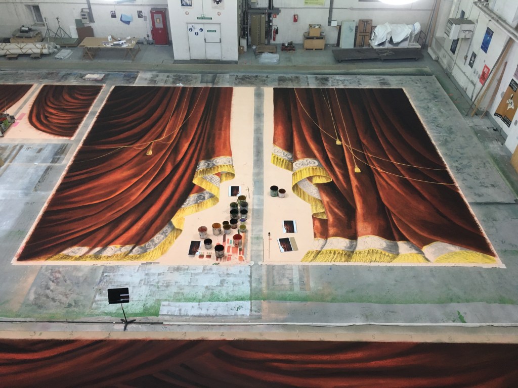 Réalisation du rideau d’avant scène, de rideaux pendrillons et de la toile nommée Rue à Verrière pour le ballet Le Rouge et le Noir, chorégraphié par Pierre Lacotte qui signe également la Scénographie assisté de Jean-Luc Simonini.